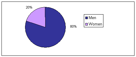 · Gender: While women made up 30% of new clients in 1999, this percentage dropped dramatically in 2001 to 18% of new clients. In 2004, it has risen again and 32% of new clients are women. The cumulative percentage of the 1,523 clients served who are women is 20%.